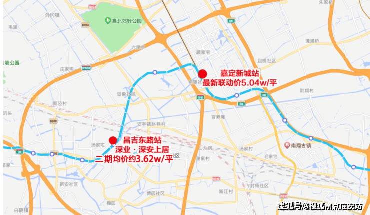随着去年房地联动价的调整,涨价趋势明显。往前两站的嘉定新城站,在去年土拍中,嘉定新城G09-2地块的联动价攀上5.04万/m²。也就是说,未来想在嘉定买百平米新房,上车门槛直接提升了一个档次。