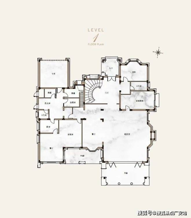 以下为独栋别墅户型图的底层设计:从图片中,不难看出,设计师在考虑独栋别墅设计上,用足心思,将主人希望拥有的功能和使用便捷都考虑在其中。