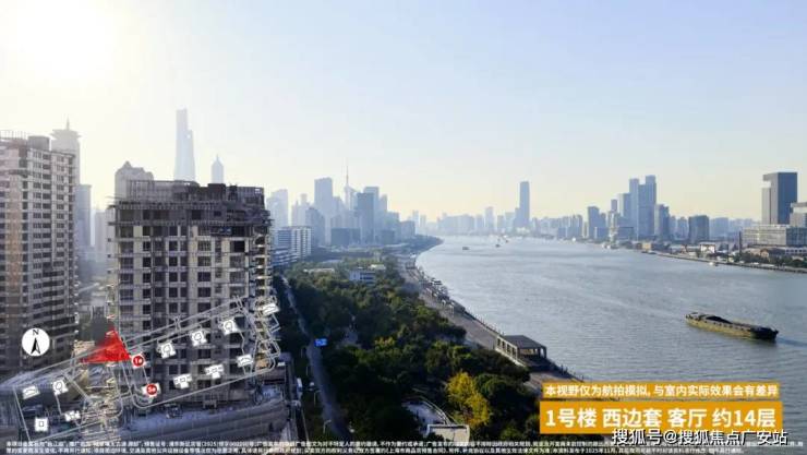 其一,滨江首排占位+占据约1.5公里黄金江岸线,定义顶豪江景天花板。