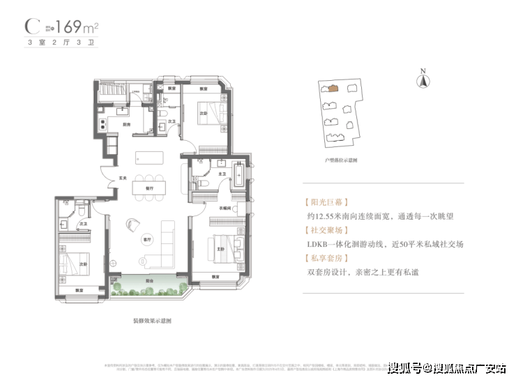 目前开放的是建面约101㎡3房和约169㎡3房两个样板间,直接来看101㎡现场实拍。