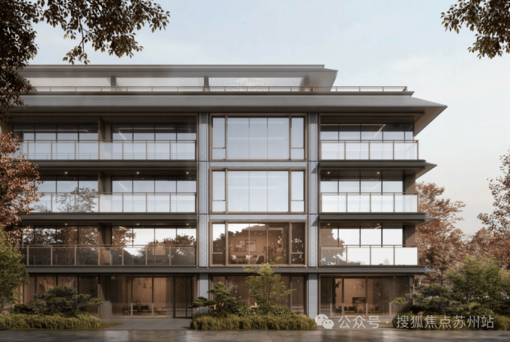 【立面】项目立面通过多种新中式元素构筑东方建筑美学,让建筑本身温润厚重从而历久弥新。横向采用大面玻璃幕墙,保障隐私的同时,尽可能的增大建筑内外场景对话。