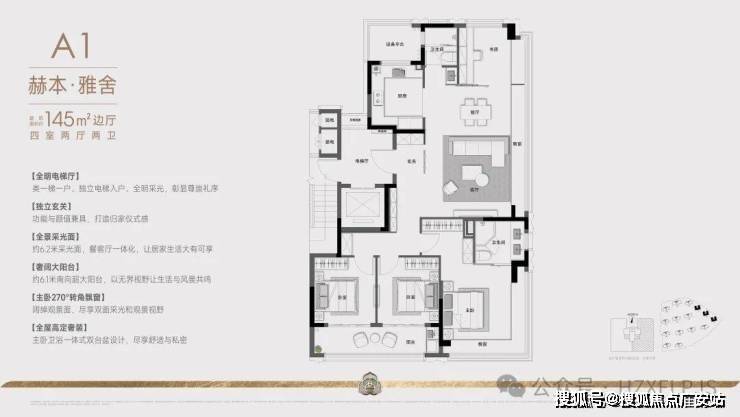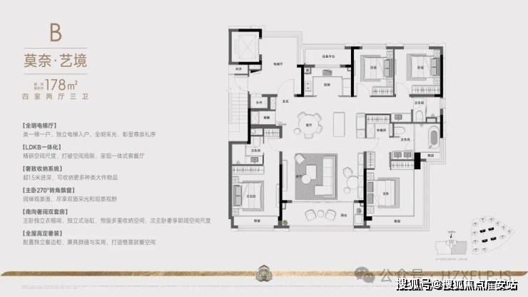 270°全明电梯厅、奢阔大四房南向双套房、中西结合两大餐饮中心、270°无边界艺术主卧、270°观景飘窗奢装艺术主卫、全屋精细化收纳,挚献杭州塔尖奢赏