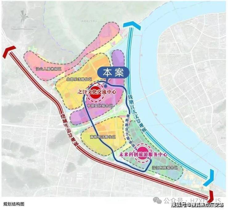 2023年7月初《之江度假区单元详细规划(草案)》公布,未来之江板块将沿江形成“两心、两廊、一环、五区”的规划结构。