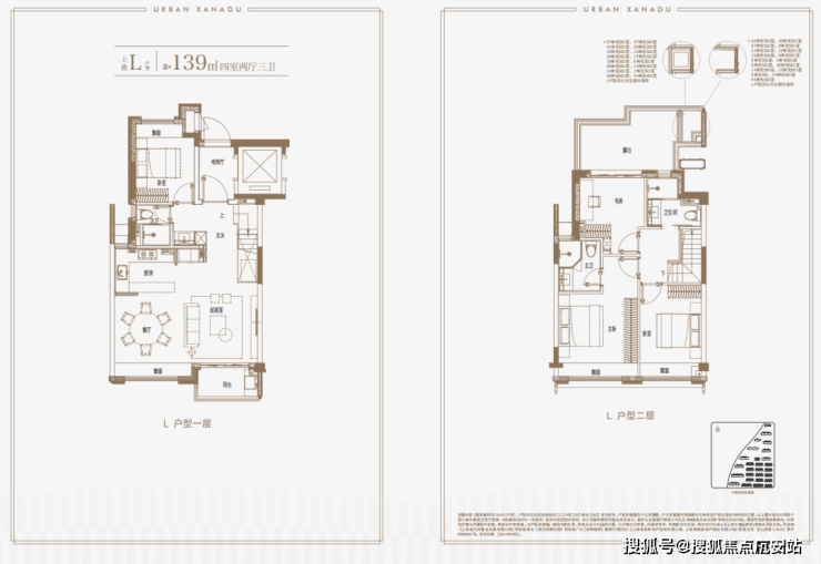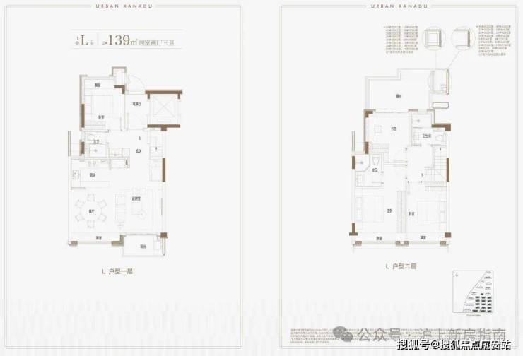 建面约139㎡上叠户型,三层是会客区,四层是居住区,阳台+露台+多个飘窗设计,附加空间非常大,在别墅类产品中实属罕见!