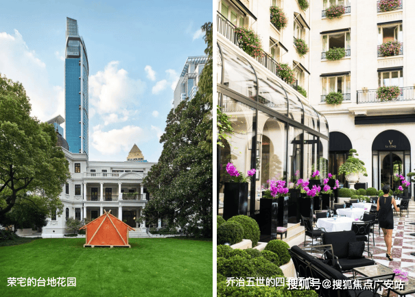 景观设计上,借鉴巴黎乔治五世四季酒店玻璃廊架设计灵感,与荣宅中经典而雅致小花园设计,营造古典与现代,繁华与静谧共融的花园之境。