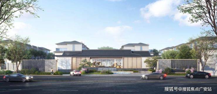 。项目融合新中式与现代设计,以灰墙黛瓦、石材干挂外立面打造山水对话的诗意栖居3
