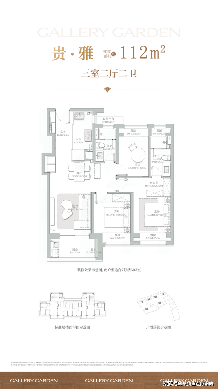 建面约112平三房为标准的三开间户型,设计上将传统的过道改为餐厅空间,将公共区域做大了,也减少了浪费;S墙设计将冰箱空间外移,厨房空间更宽裕。