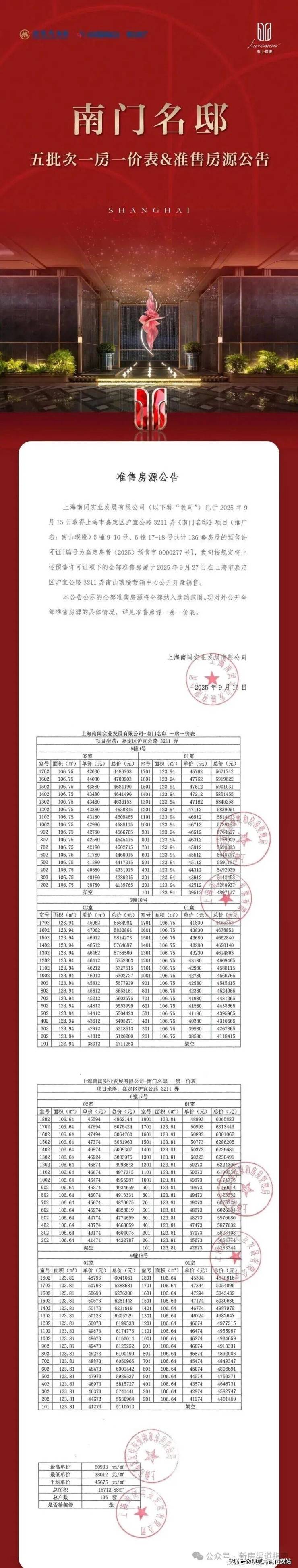 嘉定新城「南山璞缦」五期在售中!加推建面约106-123㎡房源!