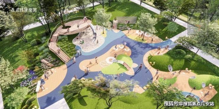 ①儿童冒险乐园②青年热练花园③老年康养广场④活力运动球场⑤全龄健康跑道