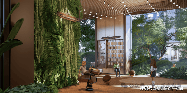 为了满足不同年龄段业主的休闲需求,项目精心打造了多个特色景观空间,其中海螺营地便是专为儿童打造的自然游乐场。海螺营地链接架空层内外,以自然为主题,设置各类趣味游乐设施,搭配柔软的草坪与丰富的绿植,让孩子们可以在自然中自由奔跑、嬉戏,释放天性,同时也能培养孩子们对自然的热爱。