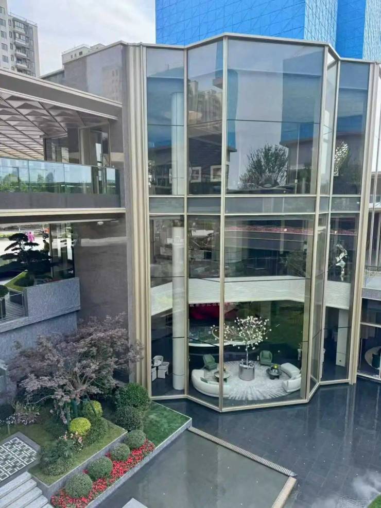 同时,从纽约两大地标奢宅汲取灵感,采用古铜色&香槟金线条勾勒通透的玻璃界面,辅以270°转角圆弧玻璃,打造出高级感的光效,熠熠生辉,你敢信?