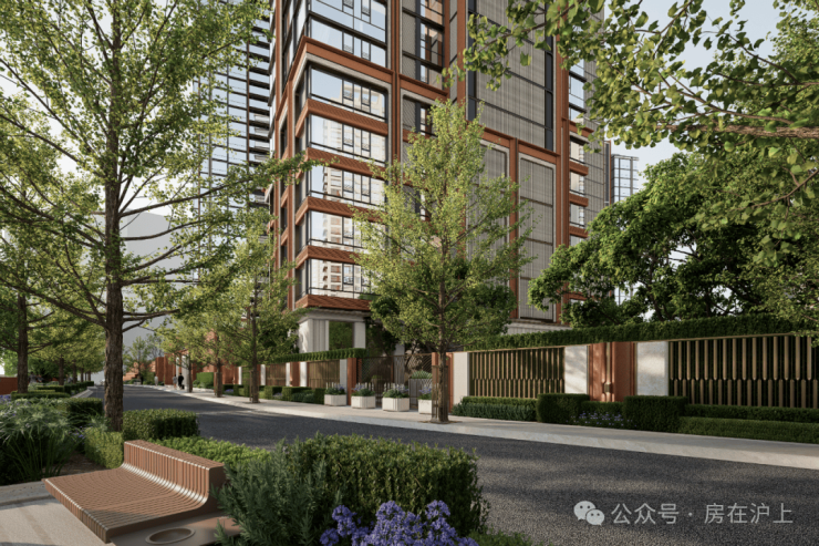 全系风雨连廊。项目打造了上海市场罕见的“流线全覆盖”连廊系统。这条连廊不仅是遮风避雨的通道,其下方空间更被打造为一座与花园景观交融的“线性美术馆”。让业主归家成为穿梭时空的艺术之旅。