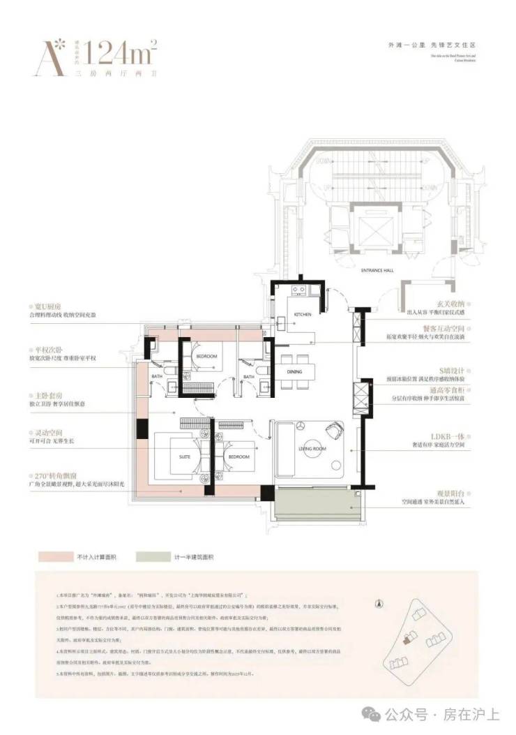 建面约124㎡经典的三房布局,高效满足主流家庭的居住需求,每一房间均设计有观景飘窗,让外滩的天际线成为日常生活的背景。创新的S墙设计与南向次卧“可开可合”的灵活隔断,在有限面积内实现了功能与美感的精妙平衡。