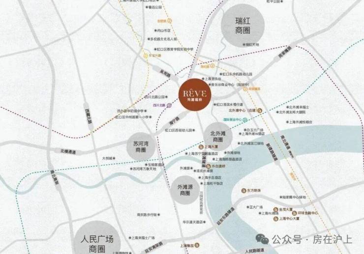 商圈叠加:南京东路-外滩商圈、人民广场商圈、苏河湾商圈、北外滩商圈、瑞虹商圈环绕叠加
