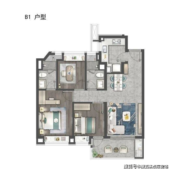 建筑方面,虹桥嘉悦府汲取高级灰经典美学灵感,以珍珠蓝石材、多彩仿石漆、深灰色铝板搭配宽幕玻璃,整体呈现玻璃流幕现代立面,经典永不过时。