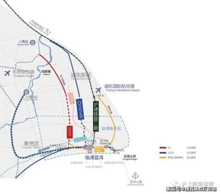 轨道交通16号线、27号线(招标中);南枫线、曹奉线(规划中)S2、G1503、S3沪奉高速(在建);六大交通线路,形成通达全球的门户枢纽,三横两纵深度串联全球城市格局;