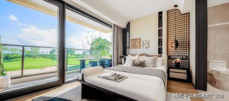 二楼主休憩,建面约95㎡户型主卧独占约5.1米面宽,而市面常规主卧面宽只有3.3-3.6米。主卧外接阔景阳台,看着庭院玩耍的孩子,没有比这更幸福的事了。这个阳台,女主人早上练习瑜伽,男主人泡杯茶看书,都是极好的。