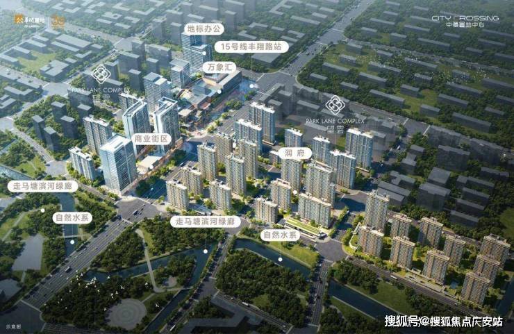 在商业方面,丰翔路TOD中环置地中心,已经确定引入华润【万象汇】商业,华润置地邀请了打造前滩太古里的5+Design作为设计师,打造这座与众不同的北上海商业封面。设计师利用中环置地中心独特的城市环境,从自然水系密布的走马塘绿地公园开始,将商业街区、购物中心、地标办公、轨交站点与自然公园融合。
