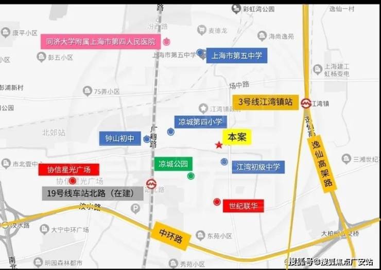 交通方面:项目距离3号线江湾镇站直线距离约900米。19号线(在建)车站北路站直线距离仅200m,将来出行十分便捷。自驾方面,周边有中环高架、南北高架、逸仙路高架等快速路。