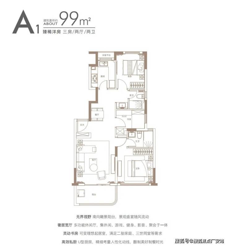 一期2#地块:规划有1幢17层住宅和商业,容积率2.94,住宅一梯两户设计,产品包括中间套户型建筑面积约108㎡3房2厅2卫;边套户型建筑面积约142㎡4房2厅2卫。