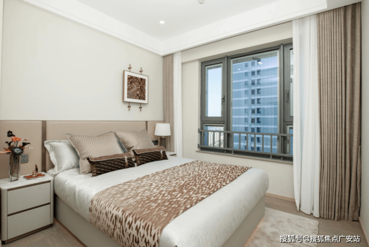 而北向次卧采用类套房设计,东侧巨幕窗景,告别了传统北侧卧室的阴暗和呆板,无论是做儿童房还是老人房,都宽奢而通透。