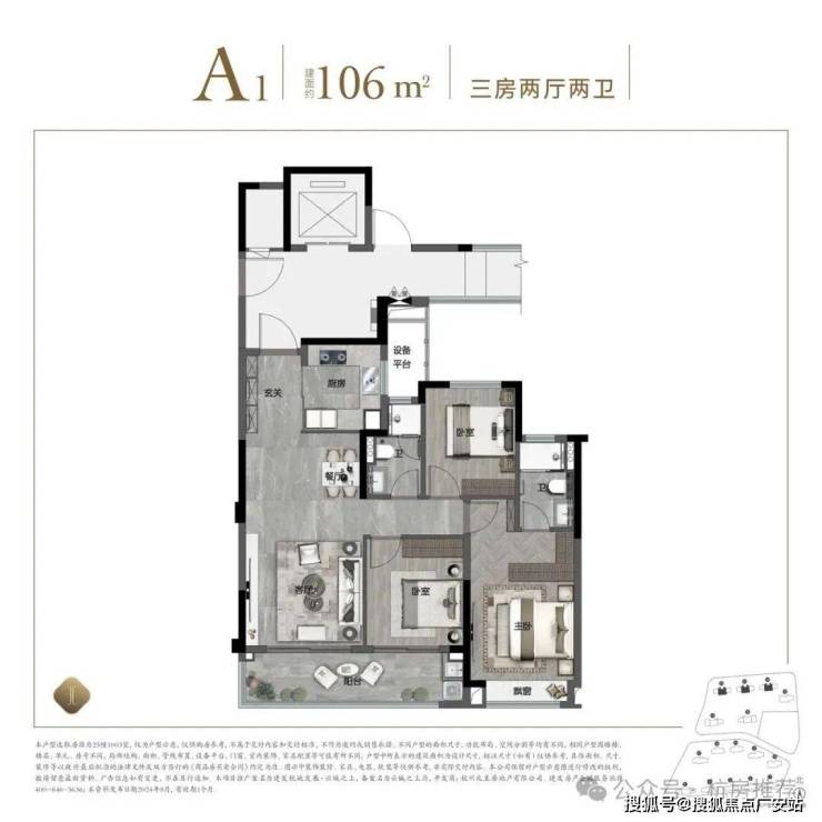 全能真三房:建面约106方三房两卫