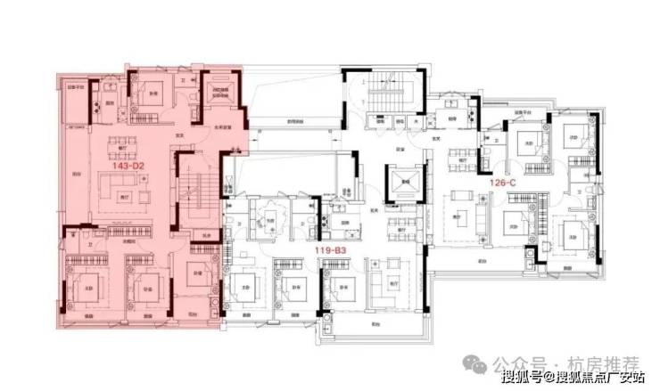 如果说前面的户型更多的体现了实用性,那么143方的户型还实现了尊贵感。
