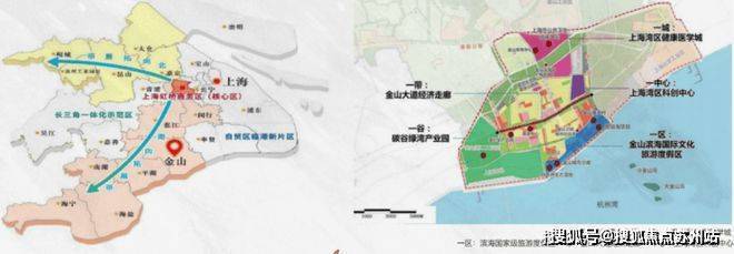 上海·金山根据《虹桥国际开放枢纽建设总体方案》,金山将全区域纳入“南向拓展带”,融入虹桥枢纽战略。以联动杭州湾,实践2035长三角一体化发展战略,树立上海西南重要门户。通过打造“上海湾区”城市品牌,成为产城融合样板城市、滨海花园城市、门户节点城市。
