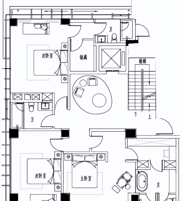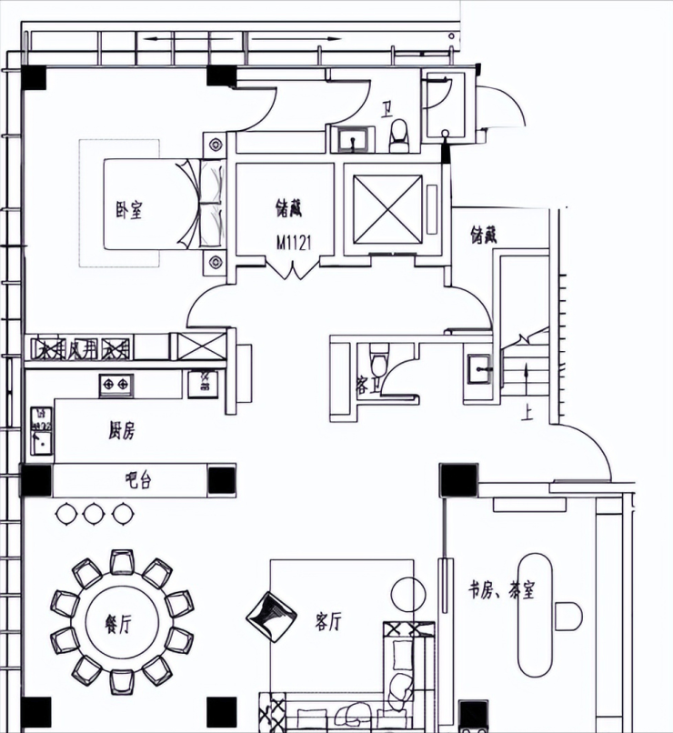 五层:大横厅 中西厨 会客厅 书房 专梯入户