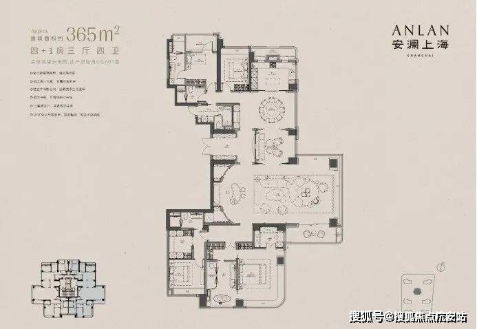 安澜上海推出建面约192-365m²户型,以极致的面宽,和首个实现三面环幕采光全景舱创造出极致通透与纯粹的居住体验。