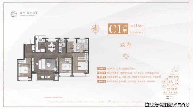 1、建面约136㎡,拥有超阔横厅的梦中情屋.短进深大面宽,奢阔横厅连通,大尺度阳台,明亮通透采光佳.