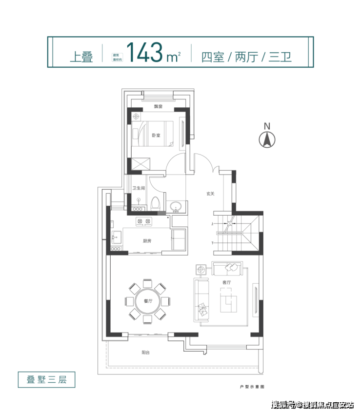 建面约143㎡4室2厅3卫上叠、约153㎡5室2厅3卫下叠,格局方正阔气,约7.3米大面宽双厅,尺度非凡,配合大面宽阳台设计,光线俱佳.
