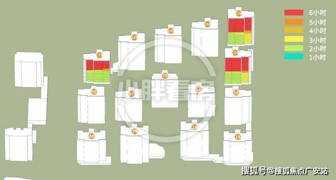 滨江时舟里的分析结果是这样:计算已考虑周边所有建筑的影响,结果表明周边建筑不会对本次开盘楼栋产生遮挡,楼栋仅受地块内部遮挡。