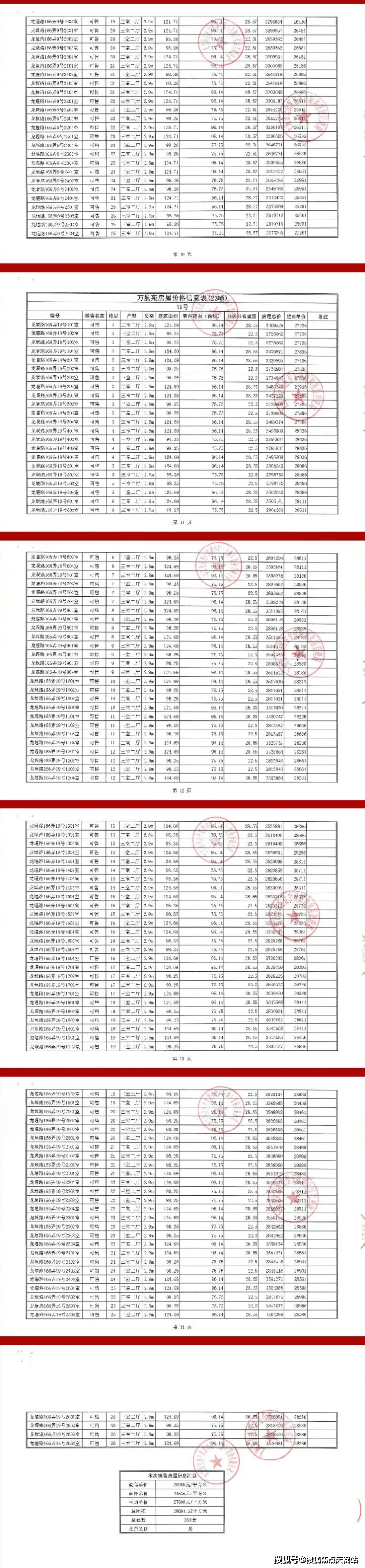 上期一房一价表