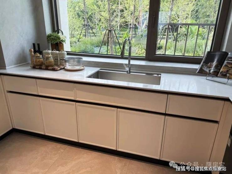 入户设置800库空间,它和传统玄关柜的区别在于:从“平面收纳”升级为“立体仓库”,储物功能更强大!约5米面宽横厅,多出来一个灵动空间,可根据个人需求定制为开放式书房、茶室等;岩板+金属饰面电视背景墙同样为交付标准;LDK一体化,餐厅区域可轻松放下6人位餐桌,并预留餐边柜位置;U型厨房,配置方太四件套(油烟机、灶具、洗碗机、蒸烤一体机)、科勒水槽及龙头等,基本所见即所得;同时厨房也附赠飘窗,将飘窗台面与橱柜一体化设计,做为了水槽区域,极大的提高了厨房空间的实用面积!边套户型主卧为270°转角飘窗,并预留两个衣柜空间;北卧为封闭阳台,实际交付时阳台会改造到位,地暖通铺,地板墙纸通铺,吊顶做好,可参考样间效果。综合来看,该户型还是非常不错的,满足改善需求的同时,各空间储物空间充足,完美解决了这一类客群的收纳痛点,作为项目主力户型,关注度很高!