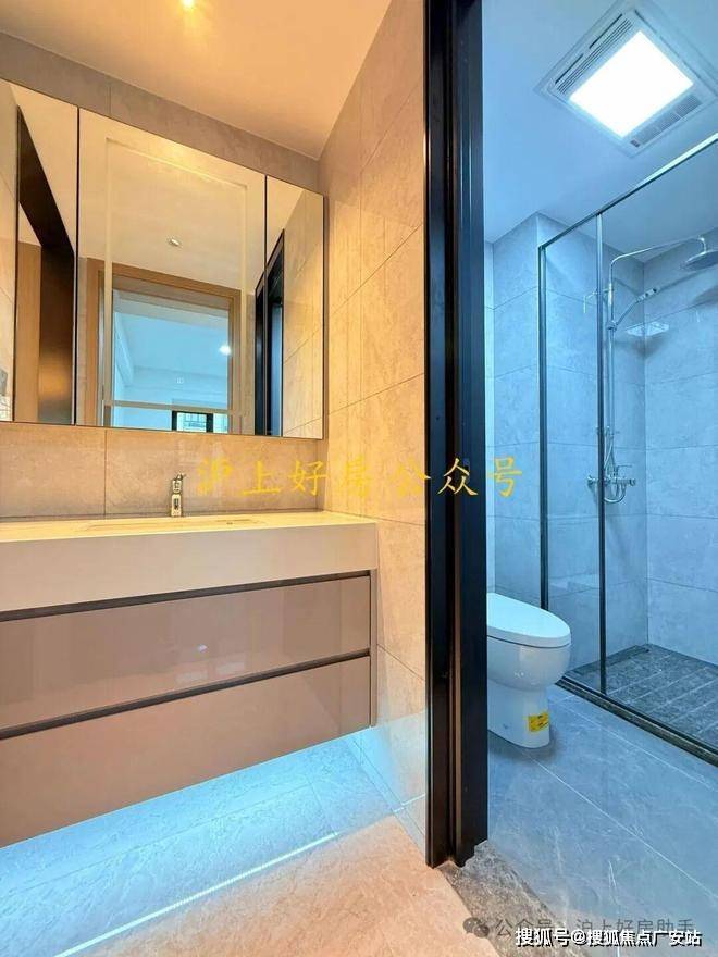 建面约82㎡两房,南向开间约6.3米,除了宽敞的主次卧,还做了全明的三段式分离卫浴。