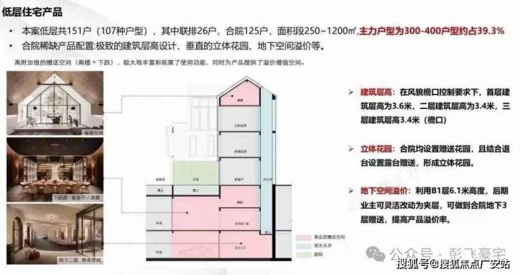 ▲多重附赠空间及采光系统 在空间打造上,通过多重庭院及露台、地下室、阳台等多维空间,极大地拓展住宅的使用功能与体验。通过庭院、地下(采光井)、宅间(大面积玻璃窗、阳台、露台)等有机结合实现多重采光系统,最大化保障空间通透性、确保采光与通风,打造会呼吸的风貌墅。