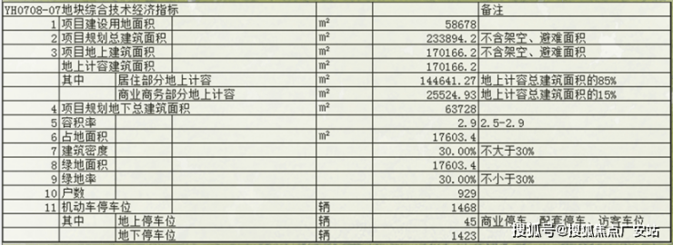 总建筑面积 233894.2平方米,其中地上建筑面积170166.2平方米,地下建筑面积63728平方米;容积率2.9,建筑密度30%,绿地率30%;机动车停车位1468个,非机动车位2101个。