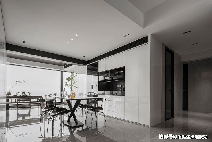 灰白色的整体调性,营造出安静惬意的居家感受。客厅采用爱马仕灰大理石,细腻的石材纹理质感,层层递进,开启视觉延展。