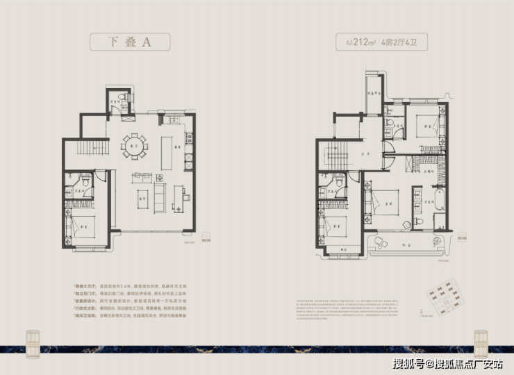 产品:上下叠独门独户、私梯入户;全套房设计,动静分区