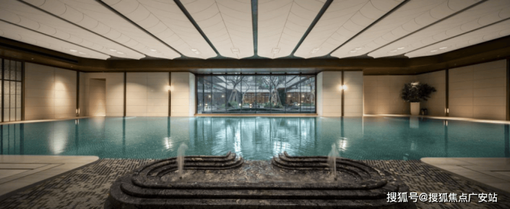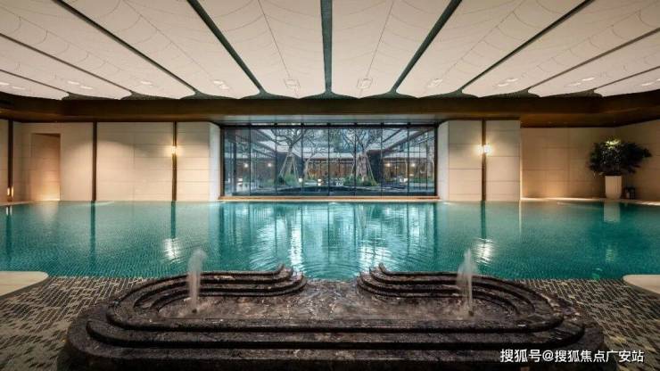 看到保利·天奕的泳池,或许你也会想起电影导演贾樟柯与大作家余华共同创作的那句名言——「一直游到海水变蓝」。室内恒温泳池里安装了奥运会同款品牌运水高(Waterco)空调除湿系统,窗外是下沉式庭院里的「密林幽谷」。