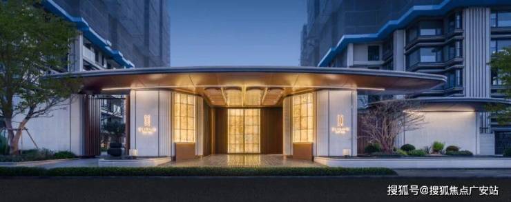 先看保利·天奕的大门。在圆弧飘檐之下,他们用极具东方韵味的纤细线条来切分透光云石,做出了中国传统素纸窗门在夜色中的温暖与剔透。