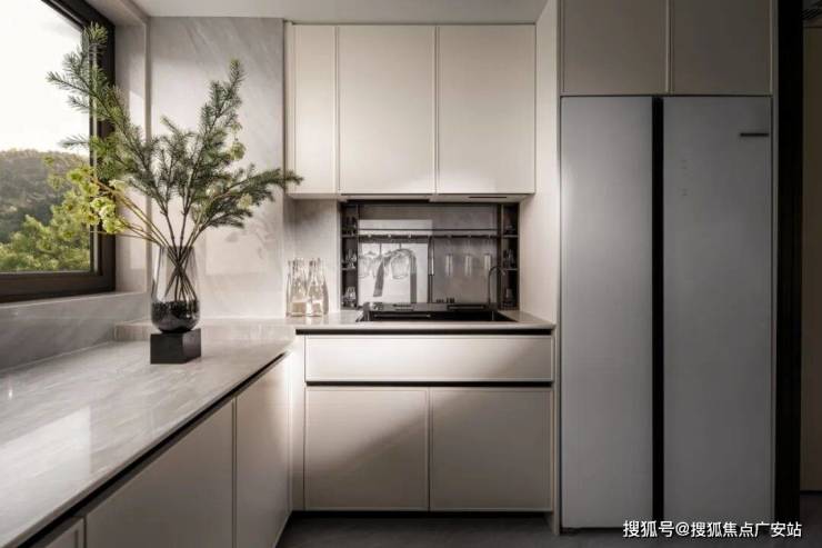 2.social厨房设计,开放式厨房水槽区转向餐厅一侧,杜绝消极空间让室内轻松连贯,也让情感交流、家庭互动在无界限。