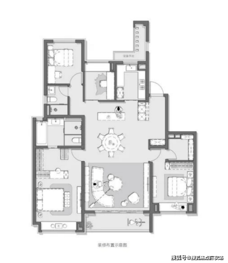 建面约179㎡4房户型,高自由改造度!