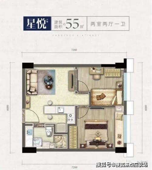 55方2房两厅(阳台内包)
