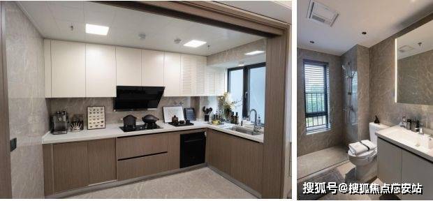 ▪厨房:健康设备加载的空间预留(冰箱/洗碗机)、灶台散热孔、热水器百叶柜门、带开关插座、台面挡水工艺