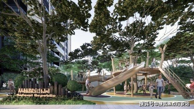 采用与自然结合、整合儿童活动设施的设计理念,游乐区与园林结合,为孩子打造畅享受奇趣、欢乐的儿童时光的场所。多尺度、多功能家长看护座椅;休憩空间绿荫覆盖;器械安全,成人可进入尺寸;设灭蚊灯,避免蚊虫叮咬;针对老年人看护的人性化设及功能配置;童年记忆树:特选点景大乔木;局部种植特色花果,设置植物科普花园。
