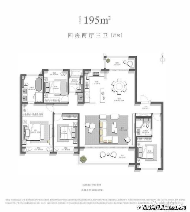 层高:195㎡户型为 3.05 米,其余户型均为 3 米。