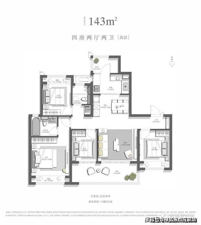 户型面积:高层为 136㎡(三房两厅两卫)和 143㎡(四房两厅两卫);洋房为 165㎡(四房两厅两卫)和 195㎡(四房两厅三卫)。