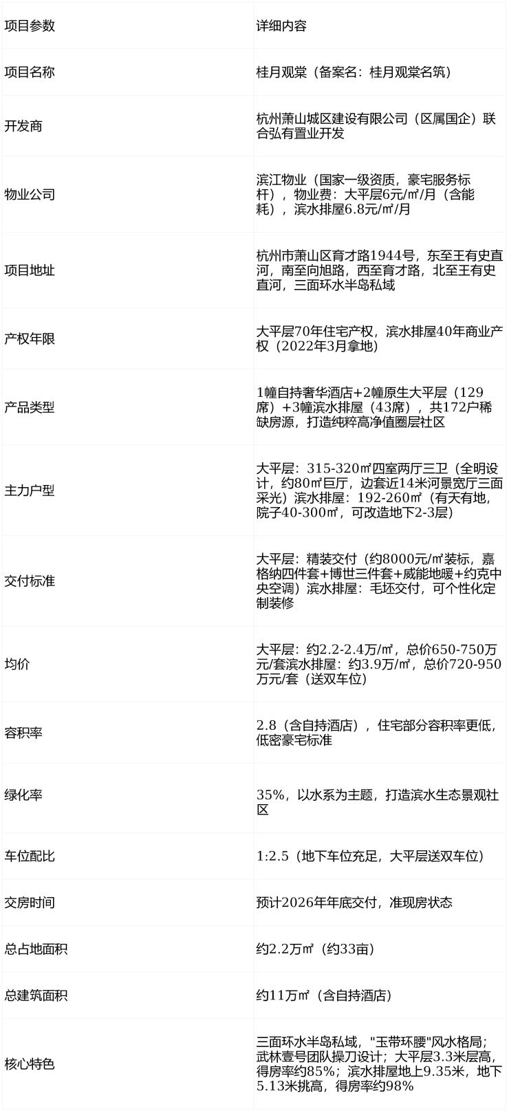 🤝国企实力背书:区属国企萧山城区建设有限公司联合开发,滨江物业提供国家一级资质豪宅服务,品质与交付有保障,居住体验佳